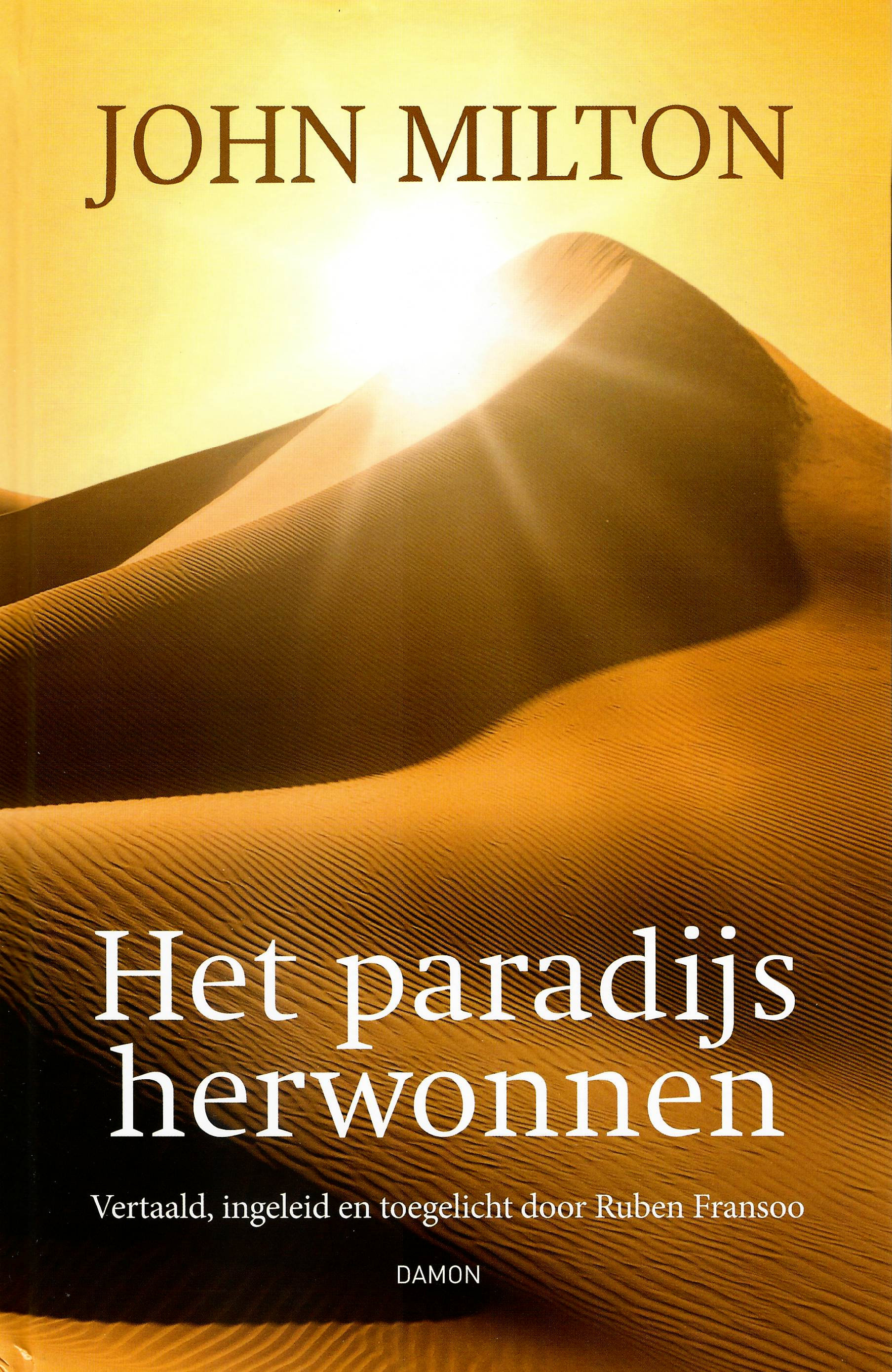 Milton is wereldberoemd geworden met (het ook zopas in het Nederlands vertaalde) Paradise Lost. Het is een episch verhaal over de val van Adam en Eva. In grootse bewoordingen, tal van stijlfiguren en een rijke taal beschrijft hij de zondeval over een paar honderd bladzijden. Later schrijft Milton Paradise regained: een verhaal van de strijd tegen de verleiding van macht, rijkdom en passie en over de standvastigheid in hoop, geloof en liefde. Het is opvallend dat het werk veel soberder en veel minder omvangrijk is. Het is een ingetogen reis van de ziel naar het Leven. De vertaler is trouw gebleven aan het origineel, maar laat een toegankelijke vertaling primeren op een letterlijke. Gelukkig is het werk rijk geannoteerd en wordt de lezer niet aan zijn of haar lot overgelaten, wat in een werk als dit hopeloos zou zijn. Het werk wordt trouwens mooi en uitgebreid ingeleid, zodat niks het goede verstaan in de weg zou staan. We zijn van uitgeverij Damon overigens niks anders dan degelijke uitgaven en vertalingen gewend … (ES)